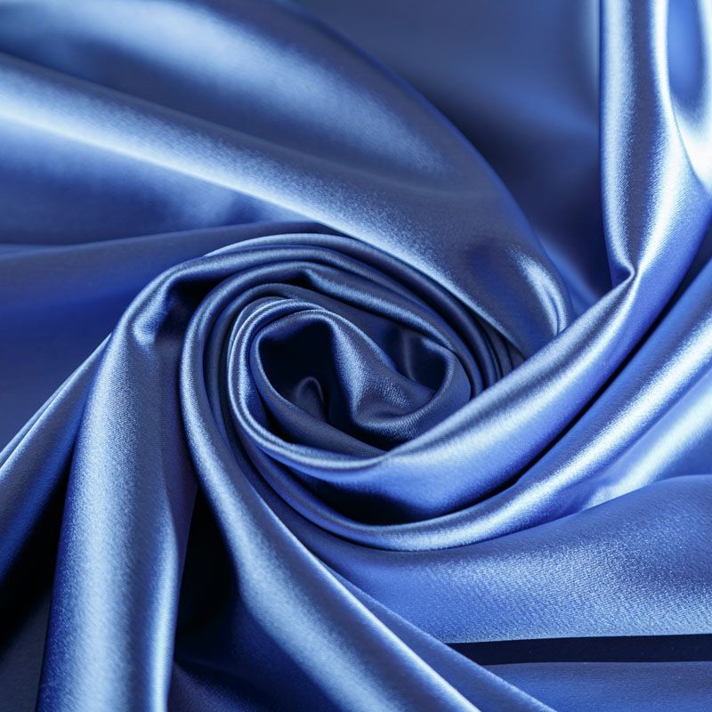 Итальянский костюмно-плательный атлас ватуссо сине-голубого оттенка. Ткань плотная, но пластичная, хорошо держит форму и отлично тянется, собирается в красивые складки и драпировки. Почти не мнется, очень удобный и практичный. Блеск умеренный, смотрится дорого, благородно. Подойдет для пошива прямых силуэтов-футляров, приталенных платьев с пышной юбкой и крупными драпировками, изделий с заложенными складками, нарядных изделий, вечерних костюмов, летнего пальто, юбки, для изготовления корсетов.