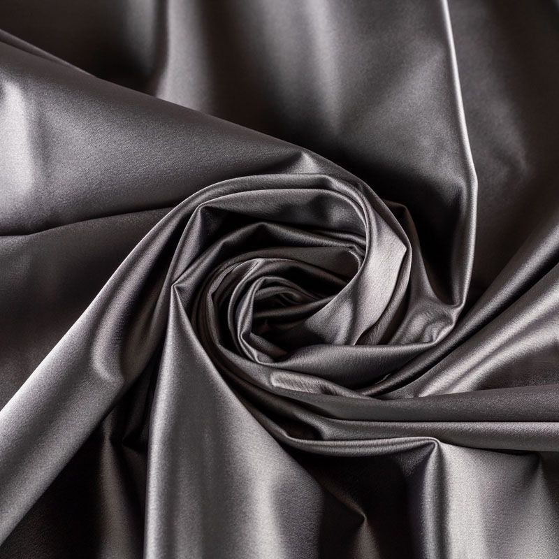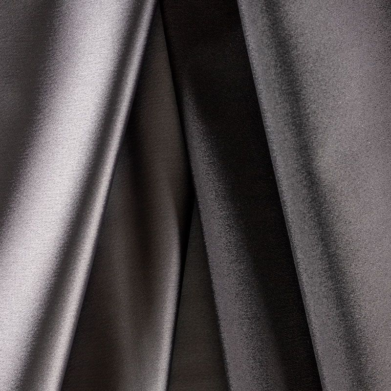 Итальянский костюмно-плательный атлас ватуссо серо-стального оттенка. Ткань плотная, но пластичная, хорошо держит форму и отлично тянется, собирается в красивые складки и драпировки. Почти не мнется, очень удобный и практичный. Блеск умеренный, смотрится дорого, благородно. Подойдет для пошива прямых силуэтов-футляров, приталенных платьев с пышной юбкой и крупными драпировками, изделий с заложенными складками, нарядных изделий, вечерних костюмов, летнего пальто, юбки, для изготовления корсетов.