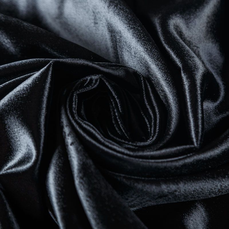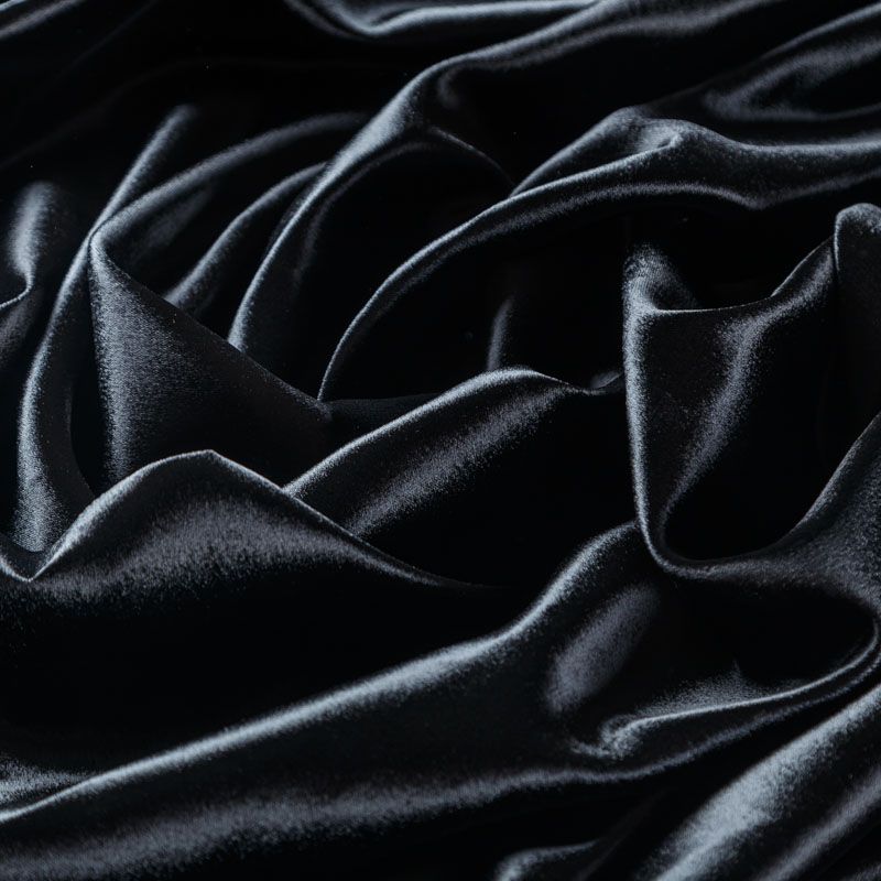 Хлопковый вискозный бархат черного оттенка. Ткань плотная, мягкая с коротким направленным ворсом. Пластичная, хорошо драпируется, струится. Имеет благородный глянцевый блеск. Подойдет для пошива костюма в пижамном стиле, жакета, юбки, жилета, шорт, комбинезонов, брюк, платья.