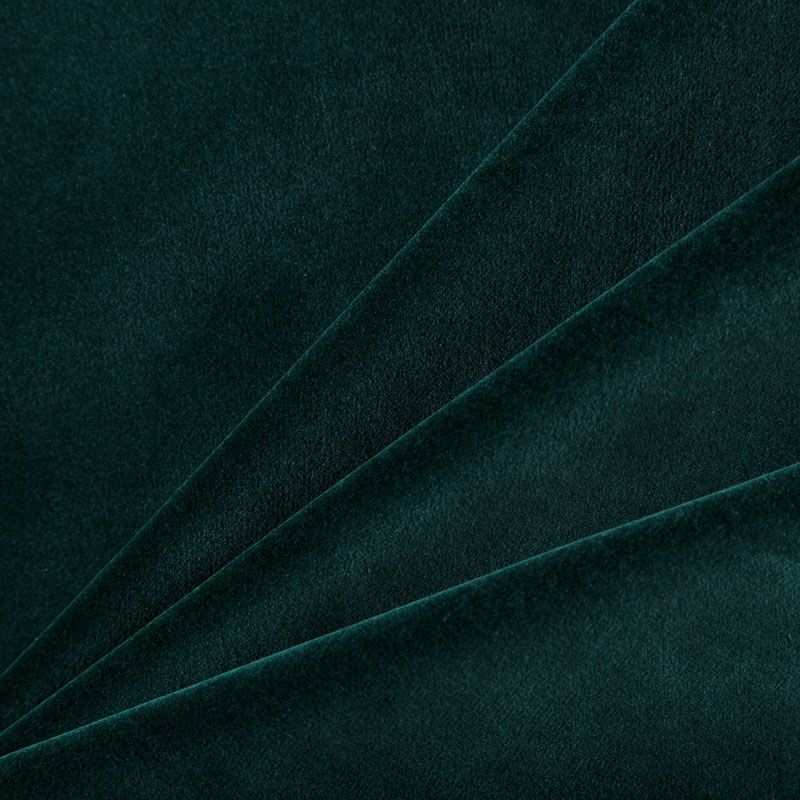 Хлопковый итальянский бархат зеленого оттенка. Ткань плотная, мягкая с коротким ворсом. Не грубая, хорошо драпируется. Имеет благородный матовый оттенок. Подойдет для пошива нарядного костюма, жакета, юбки, жилета, шорт, комбинезонов, брюк, платья-футляр, легкого пальто или бомбера.