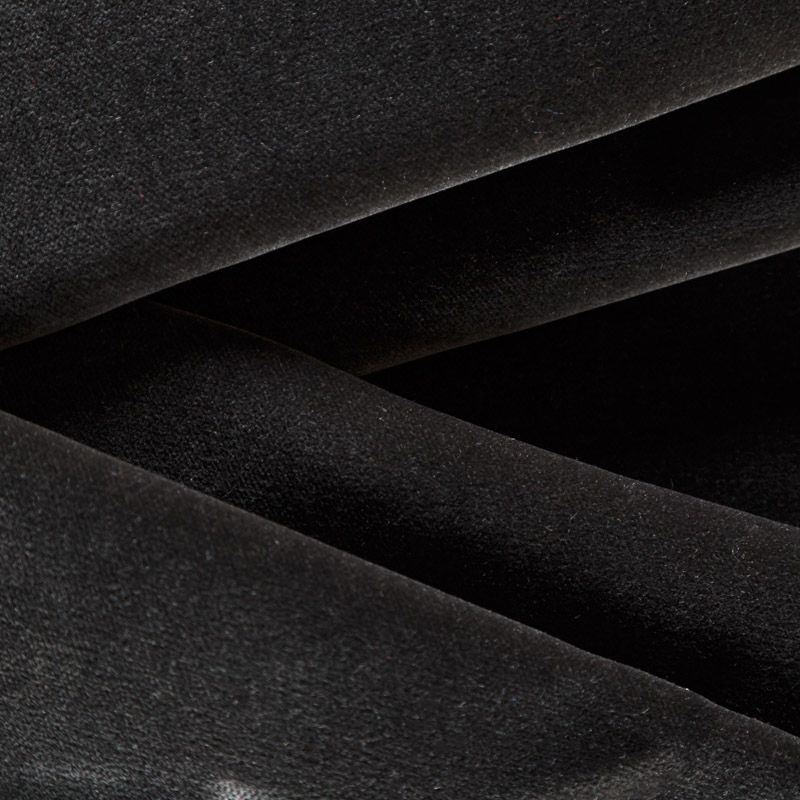 Хлопковый итальянский бархат глубокого серого оттенка. Ткань плотная, мягкая с коротким ворсом. Не грубая, хорошо драпируется. Имеет благородный матовый оттенок. Подойдет для пошива нарядного костюма, жакета, юбки, жилета, шорт, комбинезонов, брюк, платья-футляр, легкого пальто или бомбера.
