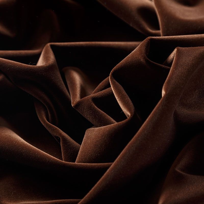 Хлопковый итальянский бархат коричневого оттенка. Ткань плотная, мягкая с коротким ворсом. Не грубая, хорошо драпируется. Имеет благородный матовый оттенок. Подойдет для пошива нарядного костюма, жакета, юбки, жилета, шорт, комбинезонов, брюк, платья-футляр, легкого пальто или бомбера.