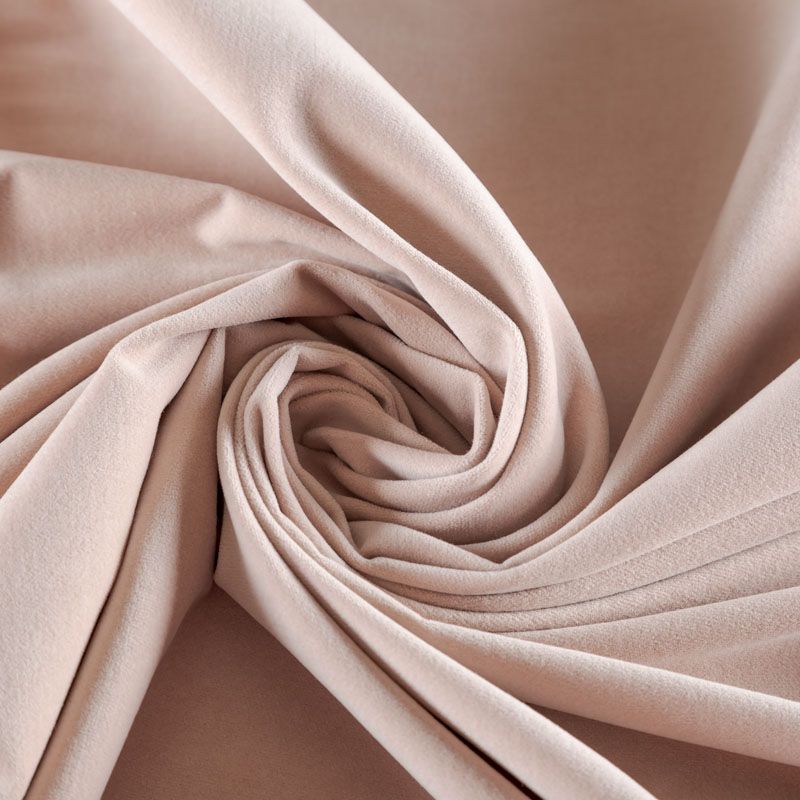 Плотный бархат из хлопка пудрового оттенка с добавлением небольшого процента эластана. Ткань очень приятная на ощупь, пластична, поверхность матовая, хорошо держит форму, а также прочна - идеальна для костюма, жакета, юбки, жилета, брюк, платья-футляра, легкого пальто, бомбера.