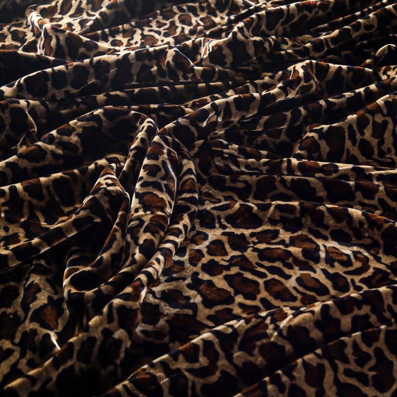Итальянский бархат с анималистической расцветкой в естественных оттенках. Ткань легкая, пластичная, мягкая, с коротким и блестящим ворсом, имеющим направление, очень приятная на ощупь, прекрасно драпируется. Подойдет для платья, юбки, туники, блузки, комбинезона, свободных брюк и костюма свободного кроя.
