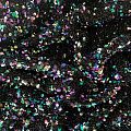 Бархатное полотно черного цвета по всей поверхности усеяно объемными глянцевыми "бензиновыми" пайетками. Ткань пластичная, прекрасно драпируется и укладывается в складки. Легко садится на фигуру за счёт основы с эластаном. Пайетки на бархате эффектно смотрятся в виде широких оборок и воланов, юбок прямого силуэта, свободных платьев-балахонов, курток, бомберов и топов с напусками.