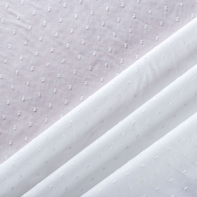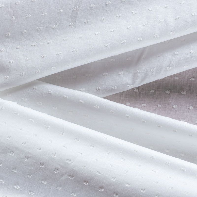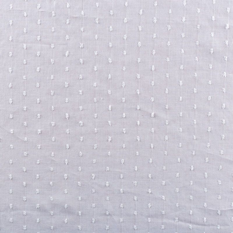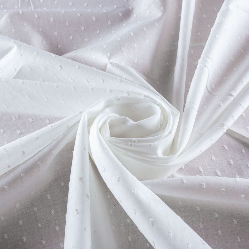Итальянский белый батист с узелками-ресничками выглядит очень нежно и женственно.Ткань очень легкая, прозрачная, приятная на ощупь, пластичная, хорошо и мягко драпируется, летящая. Батист подойдёт для модных блуз с объёмными рукавами, летних платьев и сарафанов с длинной летящей юбкой, прозрачных рубашек, декорированных объёмными бантами, туник и топов.