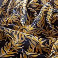 Батист с растительным принтом в молочно-желтых оттенках на темно-синем фоне. Ткань очень легкая, прозрачная, приятная на ощупь, нежная, пластичная, хорошо и мягко драпируется, летящая. Батист подойдёт для модных блуз с объёмными рукавами, летних платьев и сарафанов с длинной летящей юбкой, прозрачных рубашек, декорированных объёмными бантами, туник и топов.