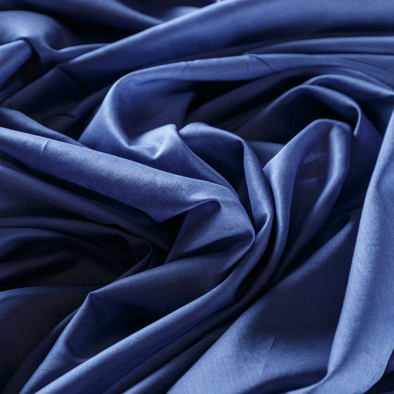 Итальянский хлопковый батист в синем оттенке, тонкий, легкий, полупрозрачный, приятный на ощупь, нежный, хорошо и мягко драпируется, летящий. Батист подойдёт для модных блуз с объёмными рукавами, летних платьев и сарафанов с длинной летящей юбкой, прозрачных рубашек, декорированных объёмными бантами, детской одежды.