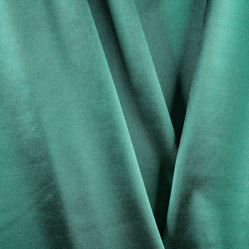 Лицевая сторона ткани с выраженным блеском, очень приятная на ощупь, "скользкая", как шелк. Ткань плотная, отлично тянется, одежда из него не сковывает движения. Хорошо впитывает влагу и быстро высыхает, не вызывет аллергии и раздражения. Подойдет для пошива купальников, парео, пляжных и коктейльных платьев, леггинсов и лосин, костюмов фигуристов, танцоров, гимнастов.