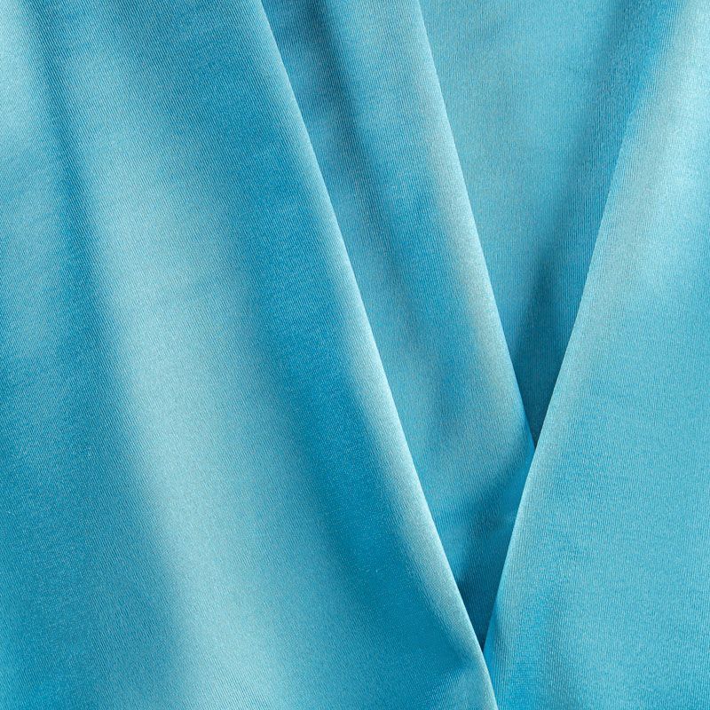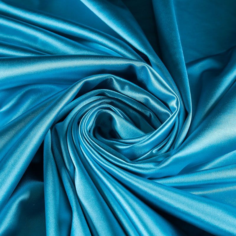Лицевая сторона ткани с выраженным блеском, очень приятная на ощупь, "скользкая", как шелк. Ткань плотная, отлично тянется, одежда из него не сковывает движения. Хорошо впитывает влагу и быстро высыхает, не вызывет аллергии и раздражения. Подойдет для пошива купальников, парео, пляжных и коктейльных платьев, леггинсов и лосин, костюмов фигуристов, танцоров, гимнастов.