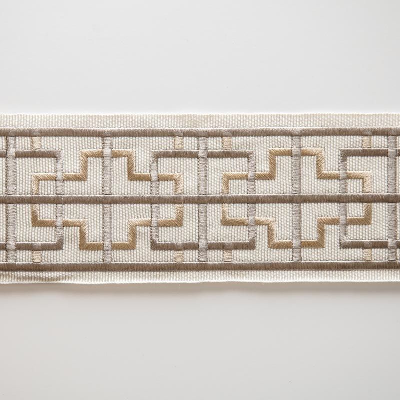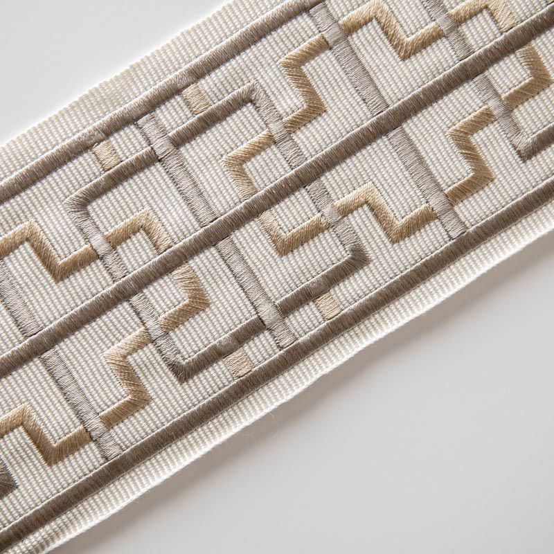 Бордюр жаккардовый 7 см 0000-357-104-013 молочный с серебристо-зеленым