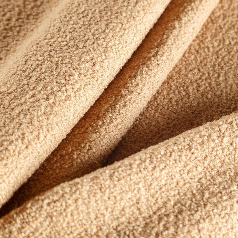 Итальянское шерстяное букле бежевого оттенка. Ткань очень мягкая, достаточно плотная, пластичная, на вид объемная, хорошо держит тепло. Красивая фактура из кудрявого ворса эффектно будет смотреться в таких изделиях как пальто на осень, жакет, жилет, бомбер, куртка-рубашка.