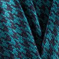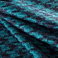 Плотная, объемная и фактурная ткань из шерсти в черно-бирюзовом цвете с жаккардовым узором гусиная лапка. Полотно не тяжелое, не сминается и износоустойчивое, не деформируется и не растягивается. Букле будет уместно для пошива пальто, кардигана, бомбера, куртки-рубашки, теплого костюма.