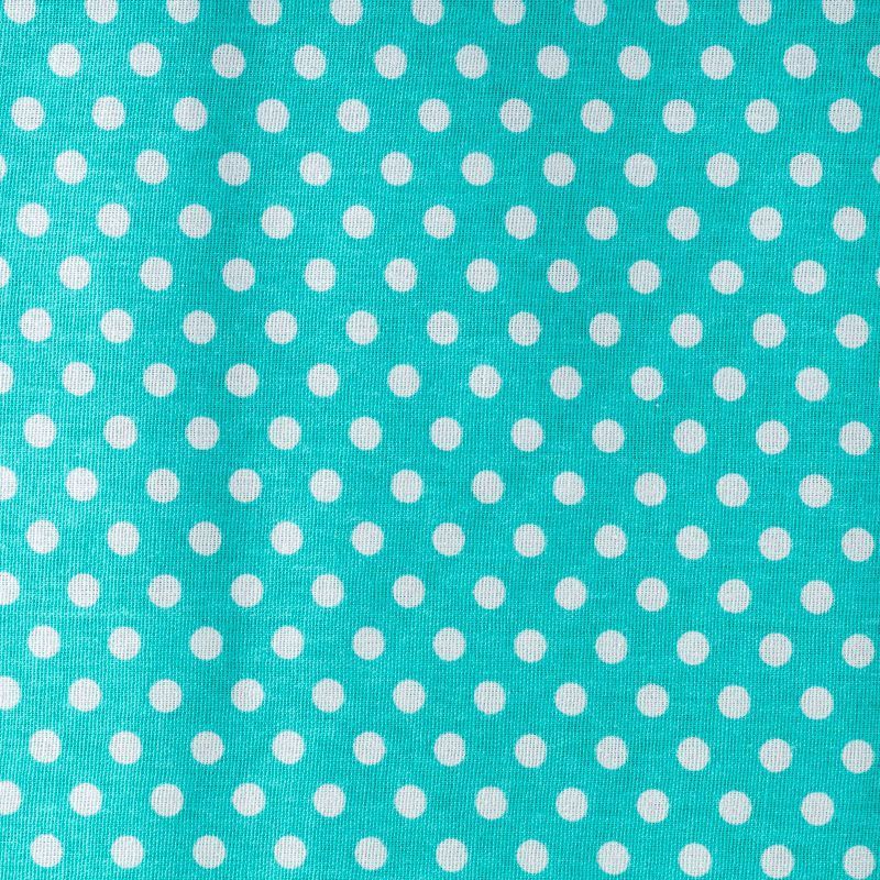 Плотная натуральная ткань с особым принципом переплетения нитей: крест-накрест. Имеет гладкую матовую поверхность чуть шероховатую на ощупь, не тянется, немного просвечивает. Прочная и стойкая к износу, надолго сохраняет яркость красок, не растягивается при стирке, практически не мнется. Мелкий белый горошек (5 мм) на ярком бирюзовом фоне прекрасно подойдет для пошива постельного белья, изготовления пеленок, бортиков для кроватки, домашней одежды и других предметов интерьера.