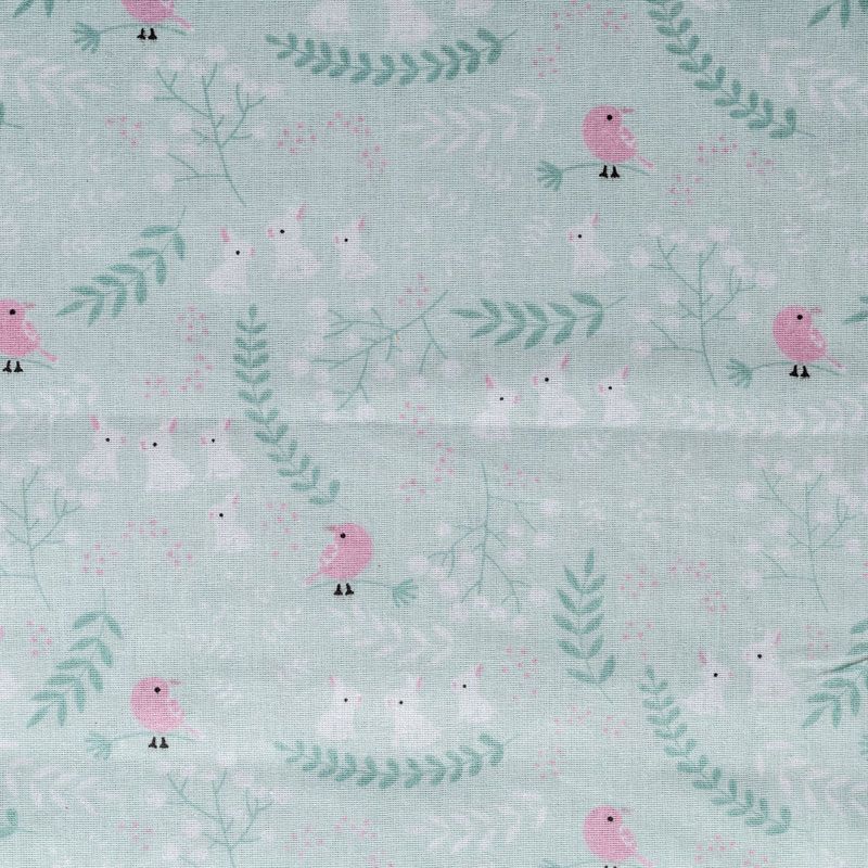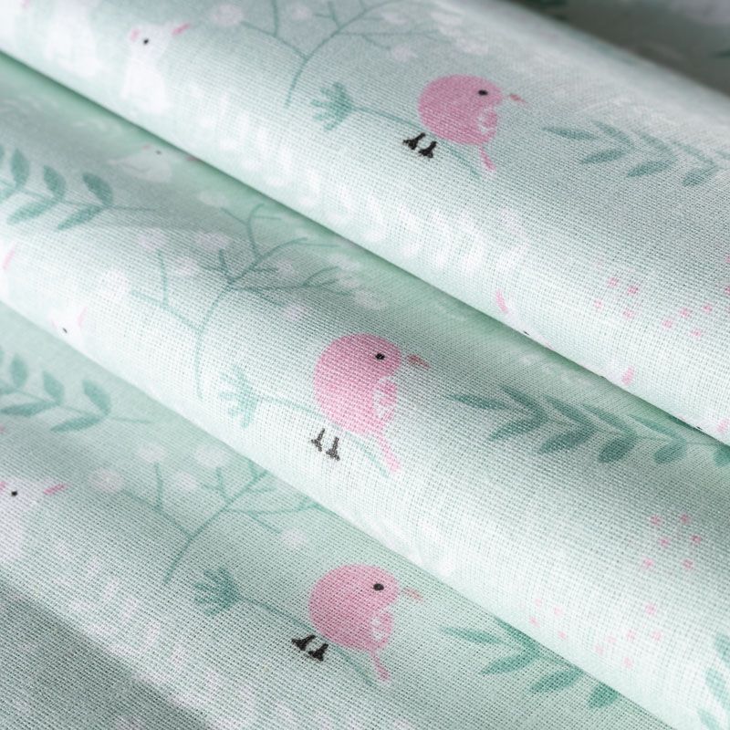 Плотная натуральная ткань с особым принципом переплетения нитей: крест-накрест. Имеет гладкую матовую поверхность, немного шероховатая на ощупь, не тянется, немного просвечивает. Прочная и стойкая к износу, надолго сохраняет яркость красок, практически не мнется. Милый детский принт в виде мультяшных животных на мятном фоне прекрасно подойдет для пошива постельного белья, изготовления пеленок, бортиков для кроватки, домашней одежды и других предметов интерьера.