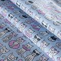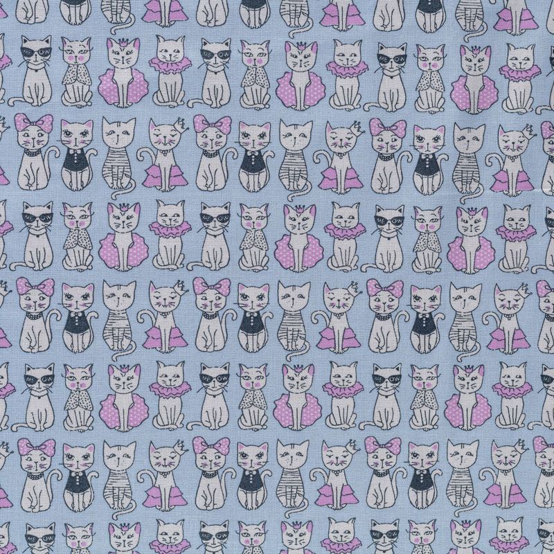 Плотная натуральная ткань с особым принципом переплетения нитей: крест-накрест. Имеет гладкую матовую поверхность, немного шероховатая на ощупь, не тянется, немного просвечивает. Прочная и стойкая к износу, надолго сохраняет яркость красок, практически не мнется. Милый детский принт в виде белых кошечек на холодном голубом фоне прекрасно подойдет для пошива постельного белья, изготовления пеленок, бортиков для кроватки, домашней одежды и других предметов интерьера.