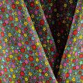 Плотная натуральная ткань с особым принципом переплетения нитей: крест-накрест. Имеет гладкую матовую поверхность, немного шероховатая на ощупь, не тянется, немного просвечивает. Прочная и стойкая к износу, надолго сохраняет яркость красок, практически не мнется. Мелкий цветочный принт на сером фоне прекрасно подойдет для пошива домашней одежды, халатов, фартуков, сарафанов и других предметов интерьера.