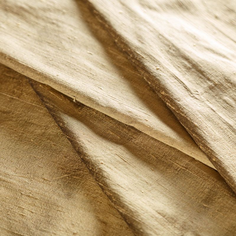 Фактурный натуральный дикий шелк из волокна высшего сорта является самым натуральным из всех видов шелка. Ткань приятна на ощупь, комфортна при носке, гигиенична и долговечна. Дикий шелк прекрасно держит форму, драпируется и подходит как для пошива блузы, топа, жакетов, платьев, юбок, плащей и тренчей, так и для дизайна интерьеров пошива штор, покрывал, подушек и обивки мебели.
