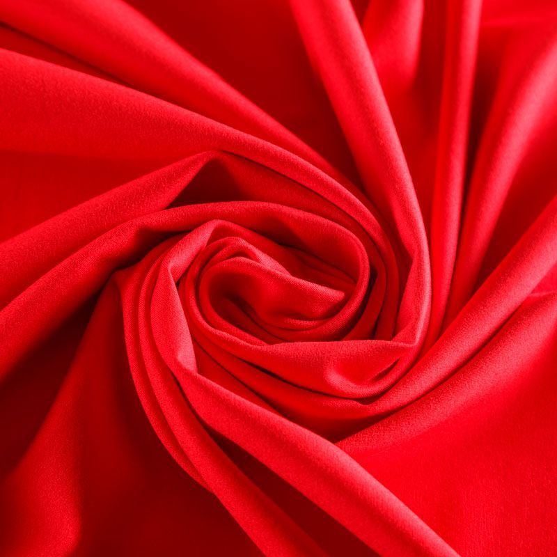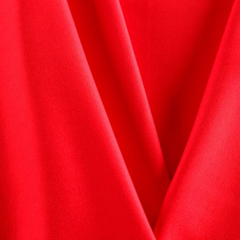 Трикотажное полотно средней плотности. Обе стороны ткани ровные, гладкие. Материал эластичный, имеет растяжимость по всем сторонам, держит форму, уютный, приятный к телу и удобный в носке. Применяется в пошиве платьев, юбок, костюмов, жакетов.