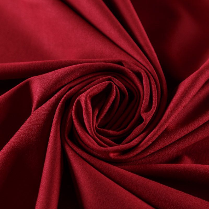 Вискозное трикотажное полотно средней плотности. Обе стороны ткани ровные, гладкие. Материал эластичный, упругий, имеет растяжимость по всем сторонам, держит форму, уютный, приятный к телу и удобный в носке. Применяется в пошиве платьев, юбок, костюмов, жакетов.