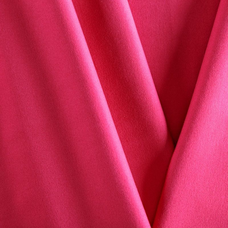 Трикотажное полотно средней плотности. Обе стороны ткани ровные, гладкие. Материал эластичный, упругий, имеет растяжимость по всем сторонам, хорошо держит форму, уютный, приятный к телу и удобный в носке. Подойдет для пошива платьев, юбок, костюмов, жакетов, брюк.