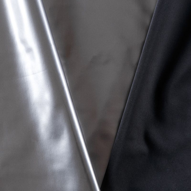 Искусственный материал, имитирующий лакированную кожу, на черной основе. Экокожа тоньше натуральной, не мнется, хорошо держит форму, не тянется. Подойдет для пошива куртки, костюма, платья, юбки, брюк, шорт, комбинезона, сумки, рюкзака.
