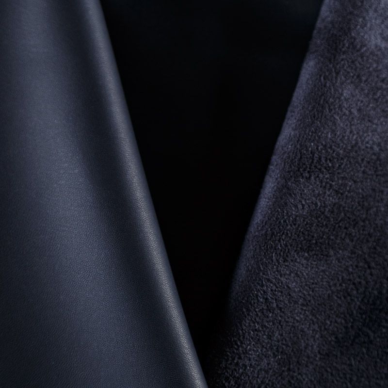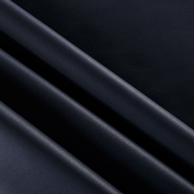 Искусственный материал, имитирующий натуральную кожу черного оттенка. Поверхность ткани матовая, гладкая, изнаночная сторона с имитацией замши. Приятная на ощупь, тянется, не просвечивает, пластичная. Подойдет для пошива куртки, костюма, платья, юбки, брюк, шорт, комбинезона, сумки, рюкзака.