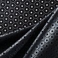 Искусственный материал, имитирующий натуральную кожу, на трикотажной основе. Поверхность матовая, с геометрической лазерной перфорацией. Экокожа тоньше натуральной, не мнется, пластична, тянется, хорошо облегает фигуру. Изнаночная сторона - черный трикотаж. Подойдет для пошива куртки, костюма, платья, юбки, брюк, шорт, комбинезона, сумки, рюкзака.