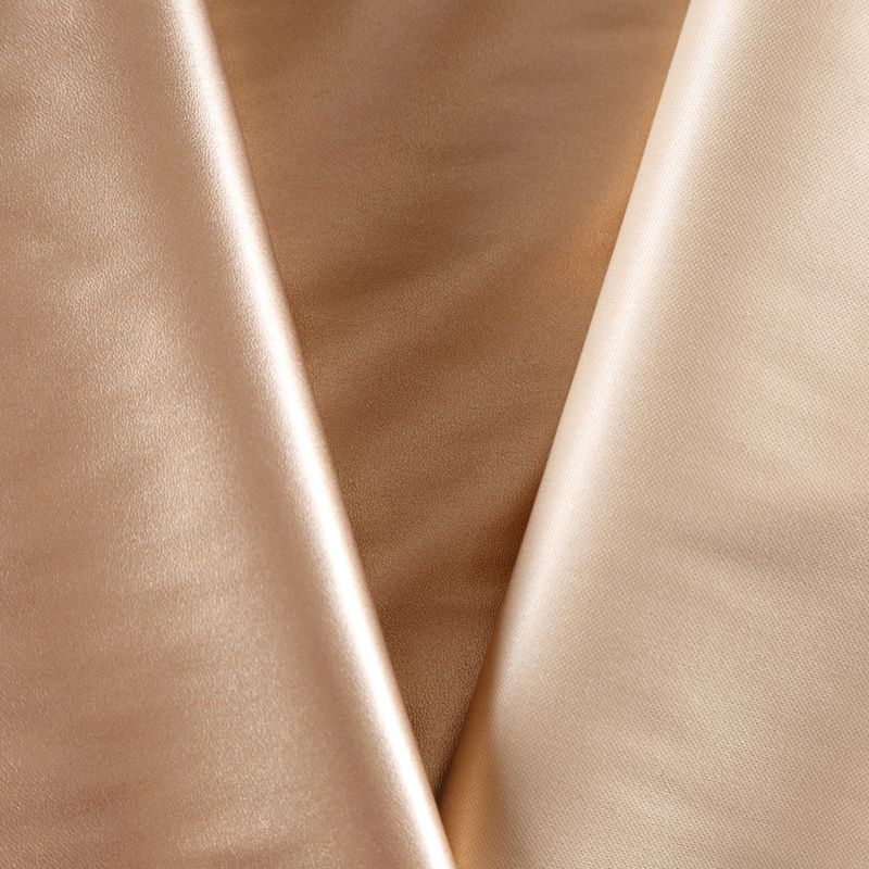 Искусственный материал, имитирующий натуральную кожу, на светлой трикотажной основе. Экокожа тоньше натуральной, не мнется, пластична, хорошо тянется за счет эластана в составе, облегает фигуру. Подойдет для пошива куртки, костюма, платья, юбки, брюк, шорт, комбинезона, сумки, рюкзака.