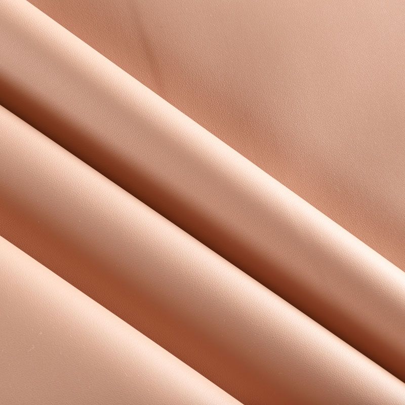 Искусственный материал, имитирующий натуральную кожу, на светлой трикотажной основе. Экокожа тоньше натуральной, не мнется, пластична, хорошо тянется за счет эластана в составе, облегает фигуру. Подойдет для пошива куртки, костюма, платья, юбки, брюк, шорт, комбинезона, сумки, рюкзака.