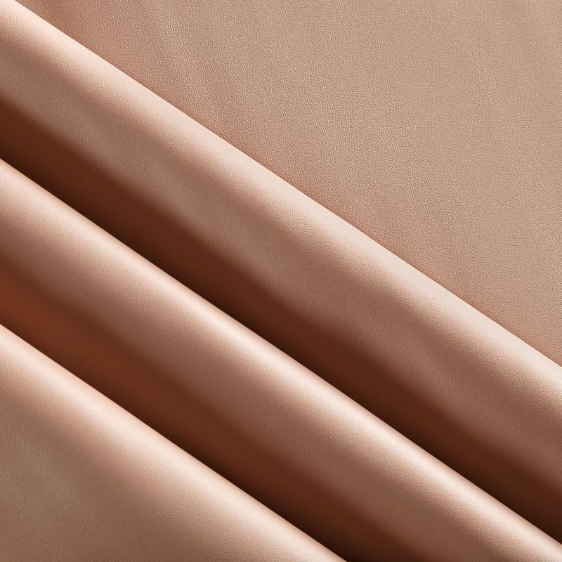 Искусственный материал, имитирующий натуральную кожу, на светлой трикотажной основе. Экокожа тоньше натуральной, не мнется, пластична, хорошо тянется за счет эластана в составе, облегает фигуру. Подойдет для пошива куртки, костюма, платья, юбки, брюк, шорт, комбинезона, сумки, рюкзака.