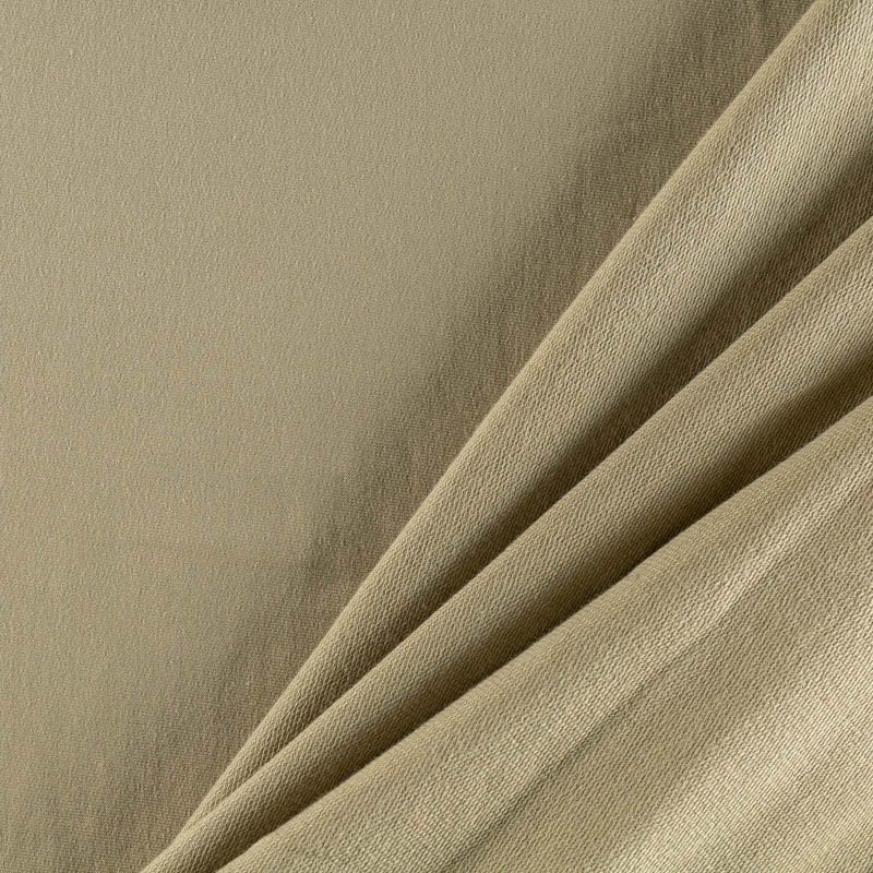 Трикотажное полотно средней плотности и пластичности. Лицевая сторона гладкая, изнанка с петельчатой структурой. На ощупь материал очень мягкий, приятный к телу. Прекрасный вариант для пошива спортивных костюмов, свитшотов, кардигана, платья, топа или жакета.