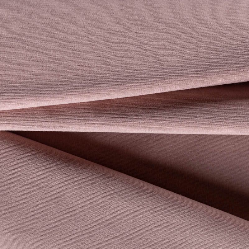 Плотный, но мягкий эластичный трикотаж. Лицевая сторона гладкая, без блеска, мелкой вязки. Изнанка – с небольшим однородным ворсом или петля. Прекрасный вариант для пошива платьев и костюмов, легких толстовок, свитшотов, спортивной, детской и  домашней одежды.
