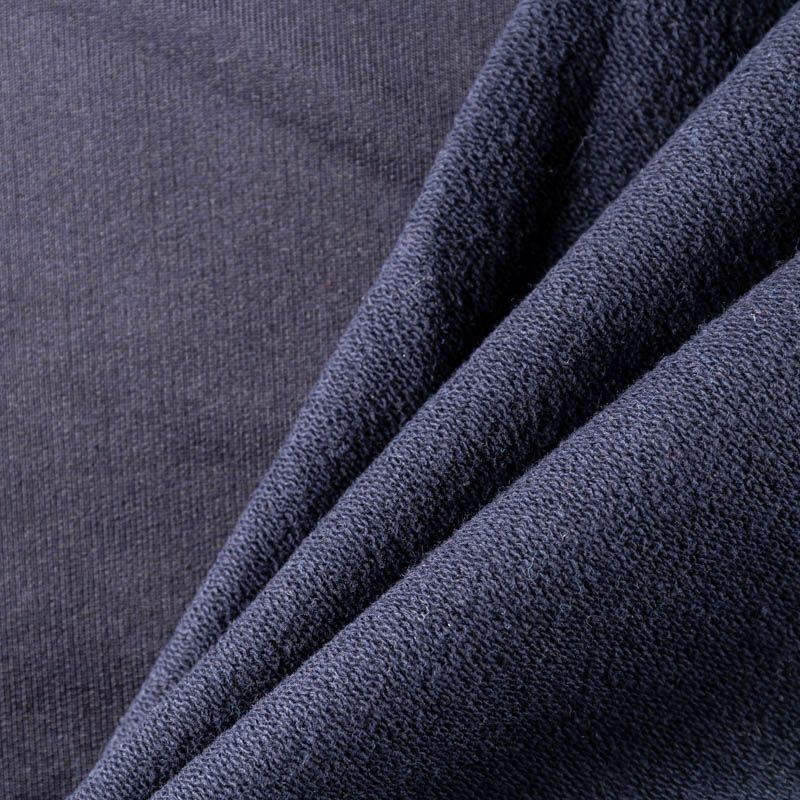 Материал гладкий с лицевой стороны, с изнаночной стороны имеет нежную мелкую петельчатую текстуру. Ткань мягкая и комфортная, достаточно эластичная, пластичная. Хорошо садится по фигуре. Практически не мнется. После растягивания быстро возвращается к прежней форме. Подойдет для пошива толстовки, спортивного костюма, свитшота, платья в спортивном стиле.