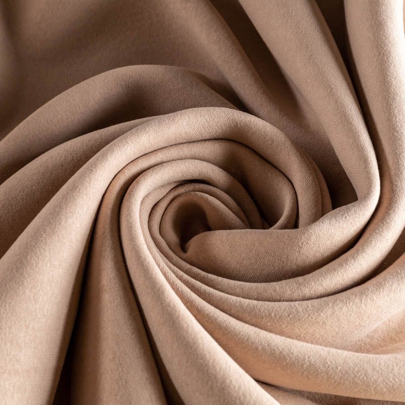 Плотный, но легкий и мягкий, с начесом по изнанке. Ткань хорошо тянется, прочная и износостойкая.  Лицевая сторона имеет выраженную трикотажную структуру. Подходит для пошива утепленных  спортивных костюмов, свитшотов, джемперов.