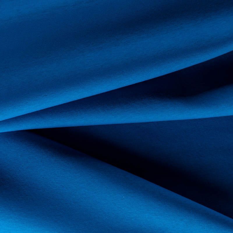 Плотный, но легкий и мягкий, с начесом по изнанке. Ткань хорошо тянется, прочная и износостойкая. Лицевая сторона имеет выраженную трикотажную структуру. Подходит для пошива утепленных спортивных костюмов, свитшотов, джемперов.
