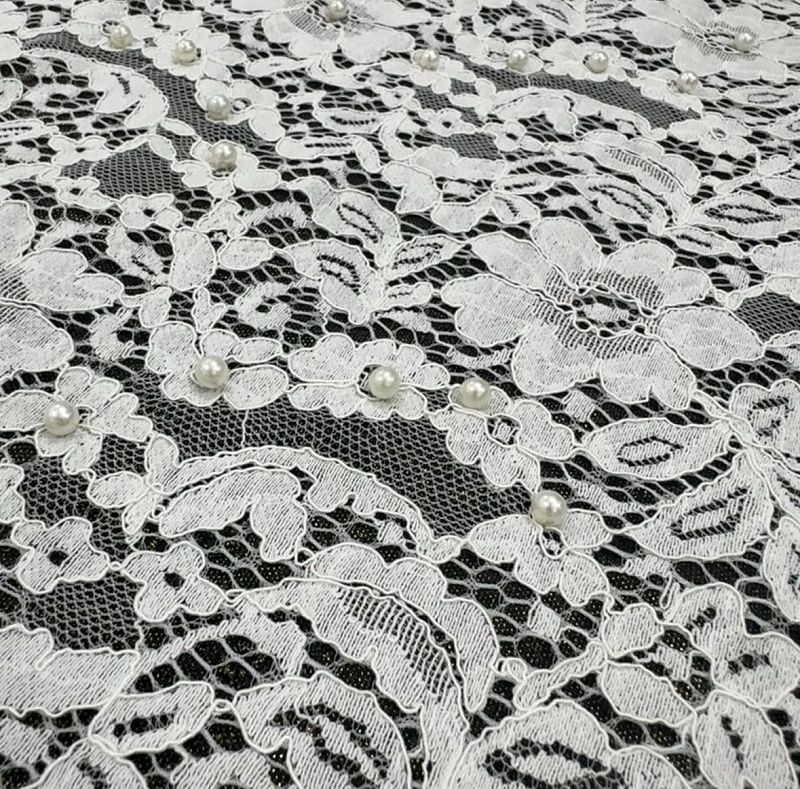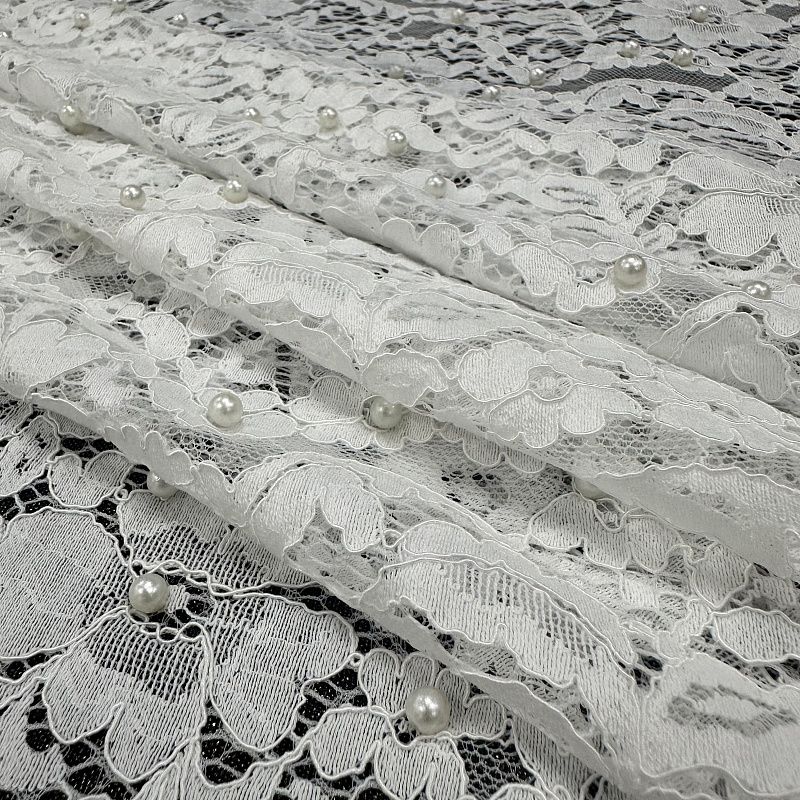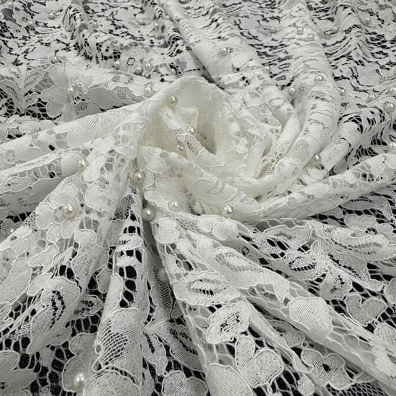 Гипюр 012-10416 молочный с бусинами в Якутске