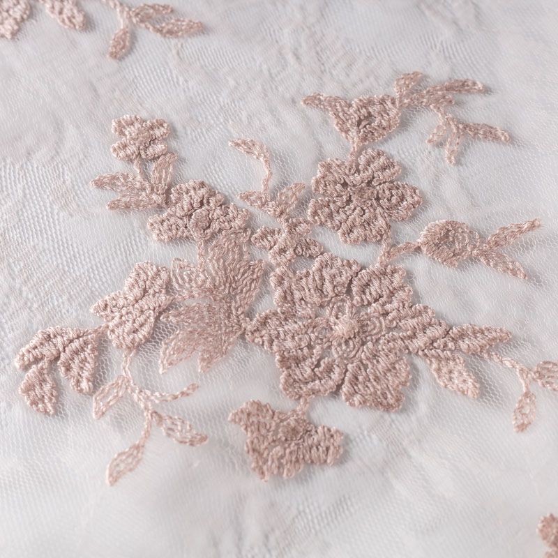 Итальянский гипюр с воздушным кружевным орнаментом, который соединяет прозрачная тонкая сетка оттенка какао. Вышивка выполнена вискозной нитью не очень плотно, поэтому полотно тонкое, легкое, очень мягкое и пластичное, хорошо драпируется, приятное тактильно. С обеих сторон ткань украшена симметричными фестонами, что придает ей законченный и нарядный вид. Великолепно будет смотреться в нарядном вечернем, свадебном платье, платье на выпускной бал, в юбках, блузках, топах.
