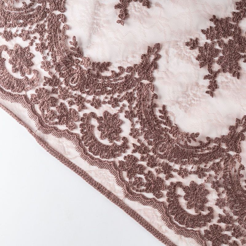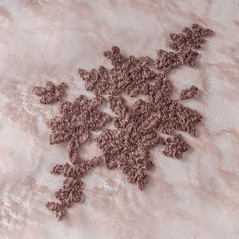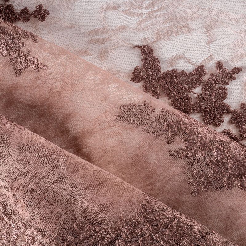 Итальянский гипюр с воздушным кружевным орнаментом, который соединяет прозрачная тонкая сетка шоколадного оттенка. Вышивка выполнена вискозной нитью не очень плотно, поэтому полотно тонкое, легкое, очень мягкое и пластичное, хорошо драпируется, приятное тактильно. С обеих сторон ткань украшена симметричными фестонами, что придает ей законченный и нарядный вид. Великолепно будет смотреться в нарядном вечернем, свадебном платье, платье на выпускной бал, в юбках, блузках, топах.