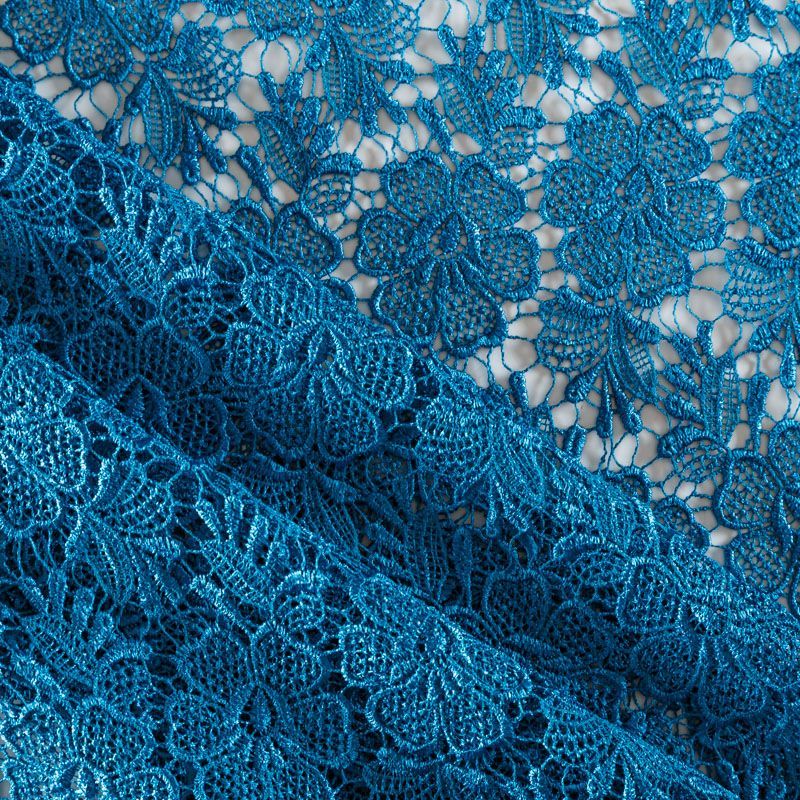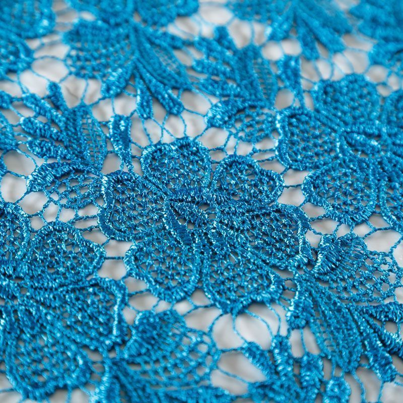 Гипюр-макраме представляет собой ажурное полотно, имеющее рельефную текстуру с цветочным ажурным плетением по всей ширине и фестонами по обе стороны кромок. Материал прозрачный на теле и на просвет, требуется подклад. Всегда актуален при создании утончённых и роскошных нарядов, придавая им дороговизны и оригинальности. Может использоваться для пошива платьев, костюмов прямого кроя, изготовления декоративных элеметов. Набирается на изделие объемом.