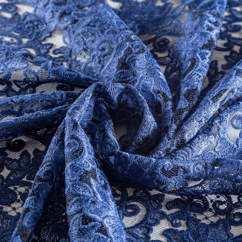 Гипюр на сетке К19-707 синий в Якутске