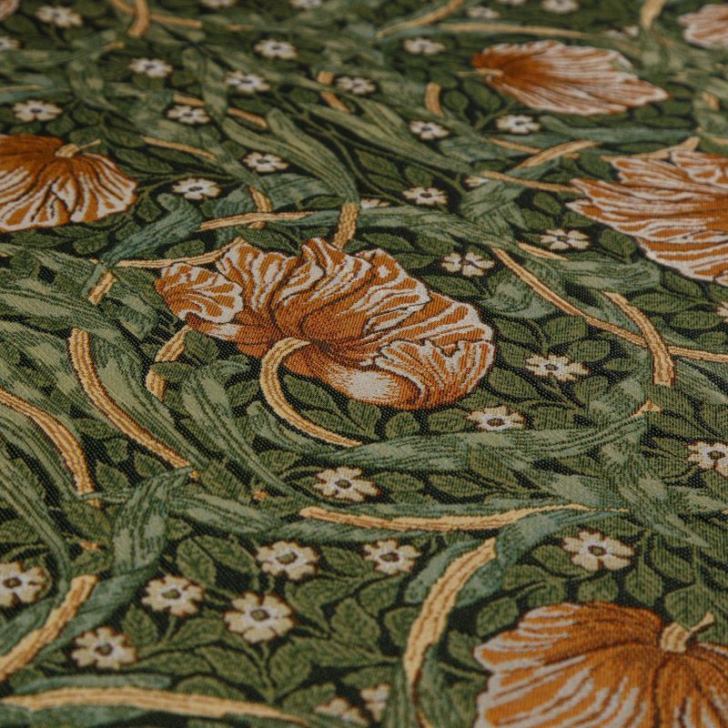 Гобелен из эксклюзивной коллекции Уильяма Морриса Первоцветы - это необычный дизайн в виде закрученной восьмерки, вдохновленный одноименными обоями созданными в 1876 году, с изображением листьев и цветов тюльпана в графическом современном стиле. Тюльпан - весенний цветок красоты. Изделия с таким принтом прекрасно украсят интерьер дома. Ткань хорошо подходит для обивки мебели, изготовления домашнего текстиля, декоративных подушек, покрывал, текстильных настенных панно, абажуров, а также для пошива одежды и аксессуаров.