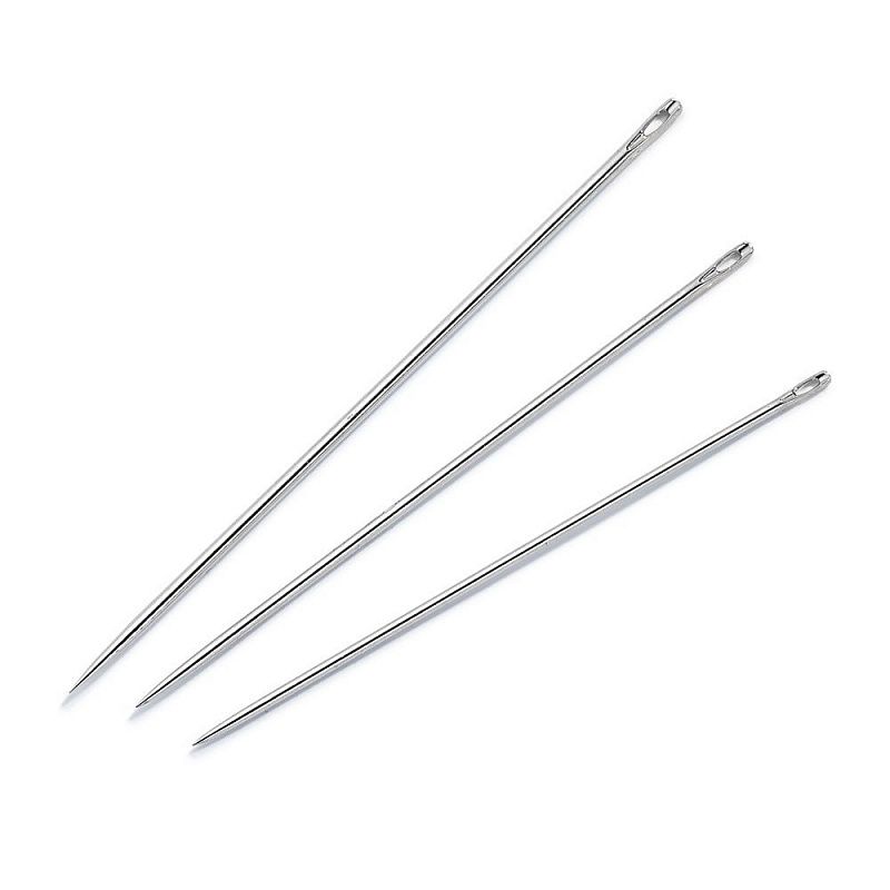 Длинные и полудлинные швейные иглы выполнены из закаленной стали и имеют выштампованное без грата ушко. Их тонкая и узко ошлифованная форма острия и гладкая поверхность с покрытием без пор позволяют хорошо проходить через все ткани. Согласованная пружинная твердость обеспечивает гибкость работы без деформации и поломок, даже в случае тончайших игл. Головка иглы сформирована так, что иглы можно без проблем проводить также без наперстка. Как правило, длинные швейные иглы прим. на 7 мм длиннее, чем соответствующие полудлинные иглы, и используются для всех видов популярных швейных работ. Многие пользователи предпочитают длинные иглы за их большее удобство в руках. Полудлинные иглы напротив часто выбирают опытные пользователи для более сложных швейных работ, они полюбились из-за более быстрого протыкания.