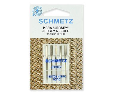 Иглы джерси № 70 предназначены для шитья тонких трикотажных материалов. Подходят для бытовых швейных машин и оверлоков. Иглы джерси имеют закругленное острие большого диаметра, что позволяет прошивать трикотажное полотно, не нарушая его структуру. Стандарт: 130/705H SUK.