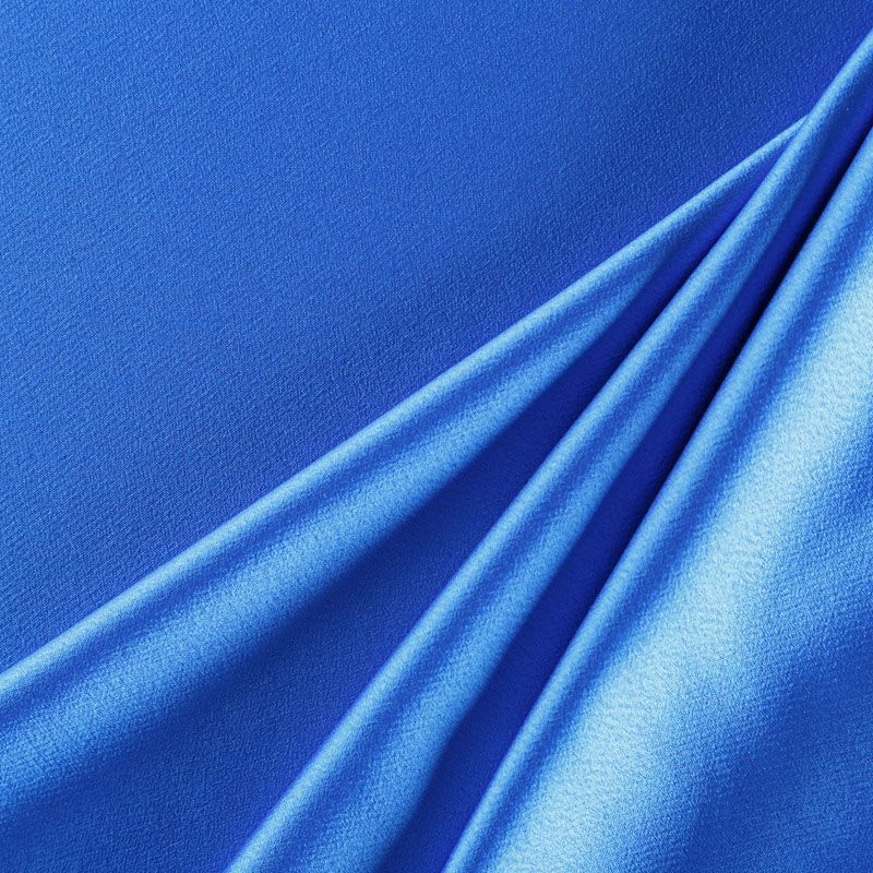 Итальянская ткань кади насыщенного синего оттенка. Кади — это креп-атлас с красивым глянцевым блеском. Ткань с плотной фактурой, роскошно ниспадает, очень хорошо тянется, изумительно садится по фигуре и шикарно смотрится в изделии. Она хорошо драпируется, эффектно облегает. Подходит для пошива удлиненных платьев с драпировками, платья-футляра, брюк палаццо, юбки-карандаш, жакета, туники, кроп-топа, а также для вечерних, свадебных и выпускных платьев и костюмов.