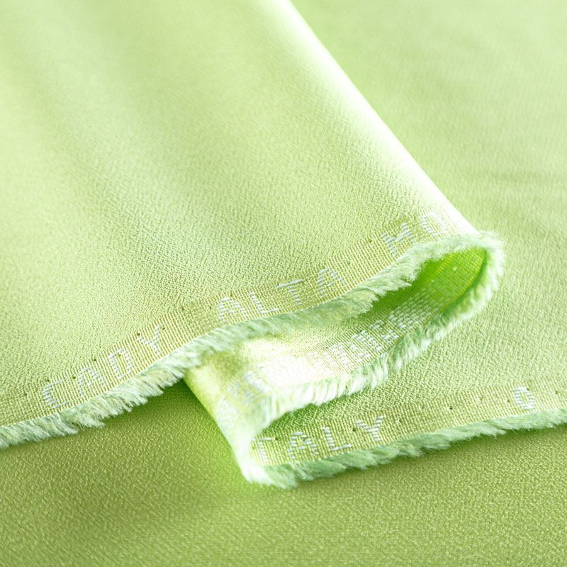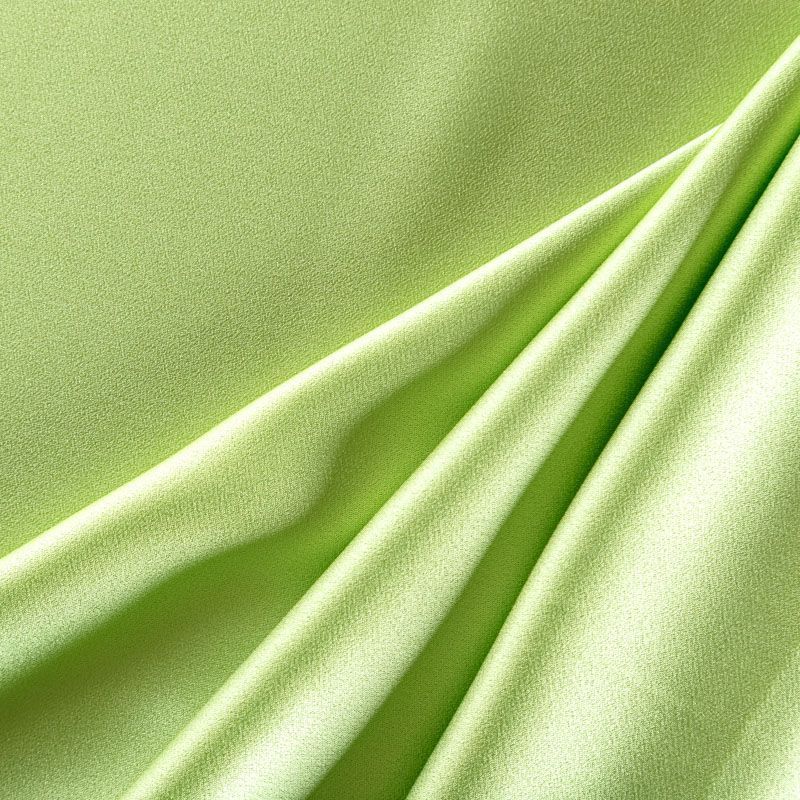 Итальянская ткань кади зеленого оттенка. Кади — это креп-атлас с красивым глянцевым блеском. Ткань с плотной фактурой, роскошно ниспадает, очень хорошо тянется, изумительно садится по фигуре и шикарно смотрится в изделии. Она хорошо драпируется, эффектно облегает. Подходит для пошива удлиненных платьев с драпировками, платья-футляра, брюк палаццо, юбки-карандаш, жакета, туники, кроп-топа, а также для вечерних, свадебных и выпускных платьев и костюмов.