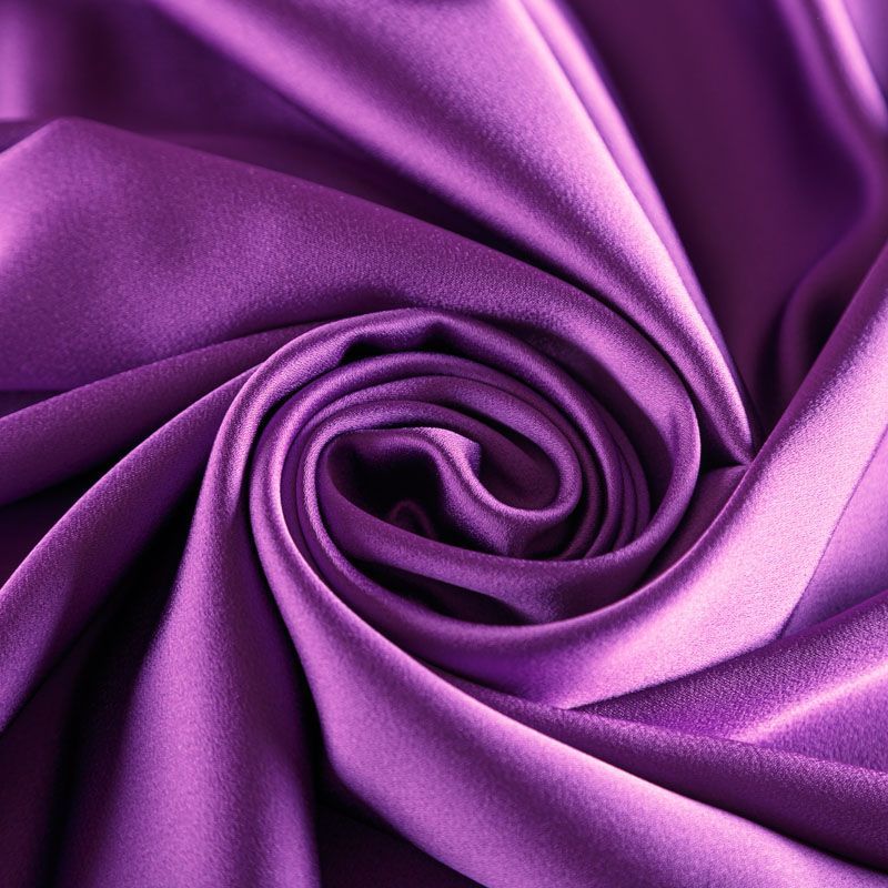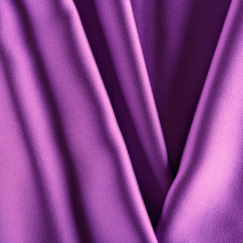 Итальянская ткань кади лилового оттенка. Кади — это креп-атлас с красивым глянцевым блеском. Ткань с плотной фактурой, роскошно ниспадает, очень хорошо тянется, изумительно садится по фигуре и шикарно смотрится в изделии. Она хорошо драпируется, эффектно облегает. Подходит для пошива удлиненных платьев с драпировками, платья-футляра, брюк палаццо, юбки-карандаш, жакета, туники, кроп-топа, а также для вечерних, свадебных и выпускных платьев и костюмов.