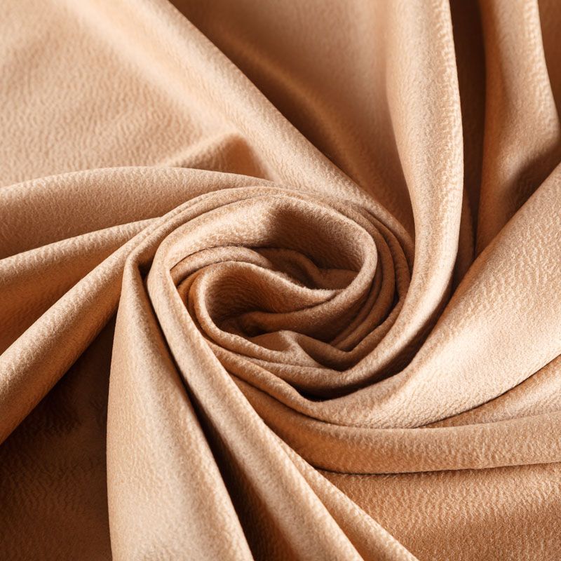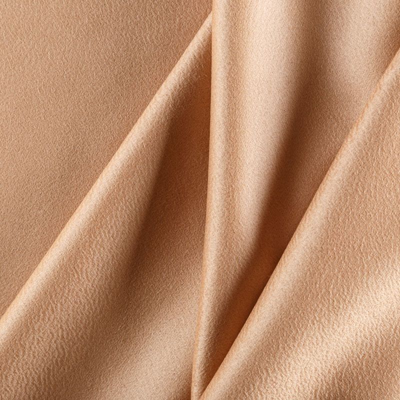 Итальянский пальтовый кашемир карамельного оттенка. Ткань мягкая, пластичная, приятная на ощупь, гибкая, средней толщины, при этом высокой плотности. Поверхность имеет короткий ворс с характерной волной. Подойдет для пошива пальто, куртки, жакета, парки, кейпа, жакета или пончо.