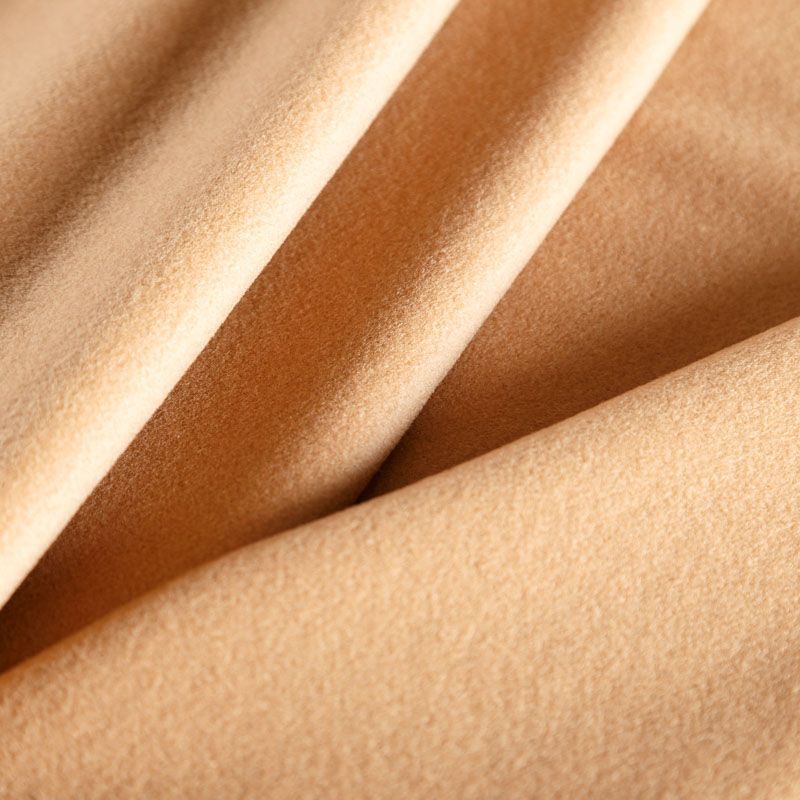 Итальянский пальтовый кашемир благородного золотисто-карамельного оттенка. Ткань мягкая, пластичная, приятная на ощупь, гибкая, средней толщины, при этом высокой плотности. Поверхность имеет короткий ворс. Подойдет для пошива пальто, куртки, жакета, парки, кейпа, жакета или пончо.