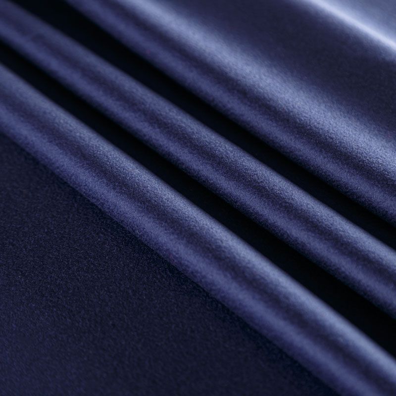 Итальянский пальтовый кашемир благородного синего оттенка. Ткань мягкая, пластичная, приятная на ощупь, гибкая, средней толщины, при этом высокой плотности. Поверхность имеет короткий ворс. Подойдет для пошива пальто, куртки, жакета, парки, кейпа, жакета или пончо.
